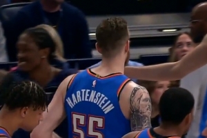 赛季首次三双!哈滕防守加抢篮板拿到三双 替补席站起来欢呼GIF-哈滕抢到篮板,拿到三双