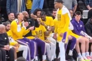 “美式霸凌”!詹姆斯“抢夺”八村座位让其去后面坐+竖中指调戏詹姆斯对八村竖中指詹姆斯让八村去后面坐、