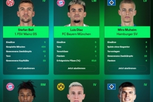 德甲1月最佳候选:奥利塞、迪亚斯、施洛特贝克、武什科维奇领衔体育资讯2月5日讯德甲一月最佳球员候选名单公布,奥利塞、路易斯·迪亚斯、武什科维奇领衔。德甲一月最佳球员候选:斯蒂芬·贝尔(中后卫,美因茨):出场5次,出场时间434分钟,赢得42次对抗,打进2球,赢得