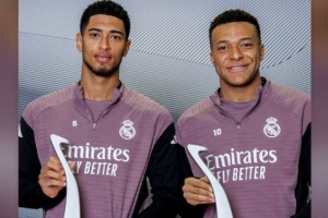 贝林厄姆晒FIFPRO最佳阵容奖杯:感谢同行们投我一票体育资讯2月5日讯贝林厄姆今天更新Instagram,晒出自己与姆巴佩和FIFPRO最佳阵容奖杯的合影。贝林厄姆写道:“感谢同行们再次将我投票选入最佳阵容!”