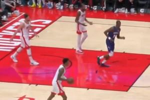 申京被克尼佩尔一步过轻松上篮!杜兰特摊手大喊:你防一下啊杜兰特to申京:PLAYSOMEDEFENSE!!!GIF-杜兰特抱怨申京不防守