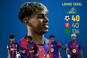 40球40助!18岁亚马尔为巴萨出战136场比赛参与80球体育资讯2月8日讯西甲第23轮比赛,亚马尔破门,巴萨主场3-0击败马洛卡。据《世界体育报》统计,18岁亚马尔为巴萨出战136场比赛,已贡献40粒进球和40次助攻。亚马尔巴萨生涯至今数据:22-23——1