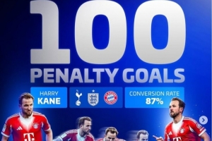 点射双响!凯恩解锁职业生涯点球100球里程碑,命中率87%体育资讯2月9日讯拜仁在本轮德甲5-1大胜霍芬海姆,凯恩点射梅开二度。德转数据统计显示,凯恩也就此达成了俱乐部+国家队生涯点球100球里程碑,命中率为87%。