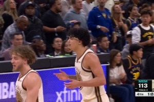 很关键!双方拼抢出界给灰熊球 科尔挑战成功拿回球权GIF-勇士挑战成功