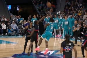 垫脚了!贝利对丰泰基奥三分犯规 追加一级恶犯GIF-贝利垫脚三分犯规