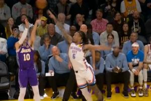 好帅的三分!湖人三分战术 肯纳德变向晃飞杰林疾速出手命中GIF-肯纳德三分