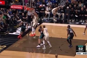 势大力沉!桑托斯篮下吃饼接斯潘塞助攻双手暴力砸扣GIF-桑托斯篮下双手暴扣